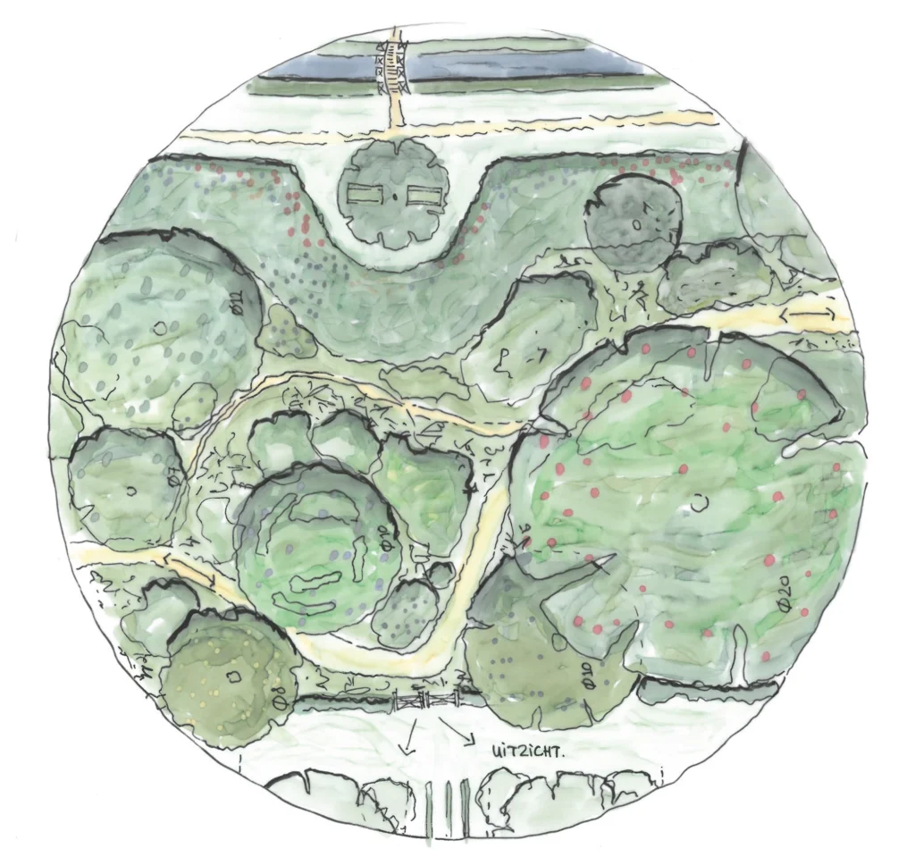 Een mooie ingekleurde geschetste tekening van het totaalplan of een detail, kan helpen om je idee goed over te brengen aan andere mensen.